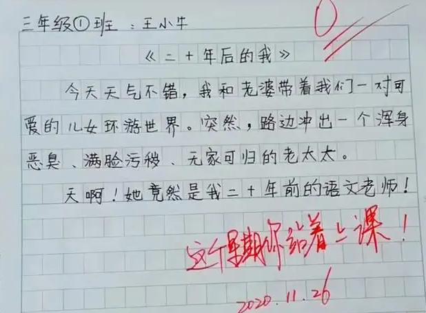 相信很多人看到小学生写的作文都会哈哈大笑,因为写得很真实,网友看到小学生写的作文后表示:“秀,是你吗”,可见现在的小学生写作文时非常喜欢用流行语。
