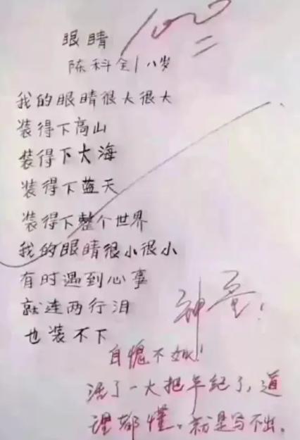 听着虽然像笑话,但是都是学生的亲身经历,可见艺术源于生活,所以学生平时要多观察身边,说不定就是写作素材,也间接说明现在的小学生人才辈出。