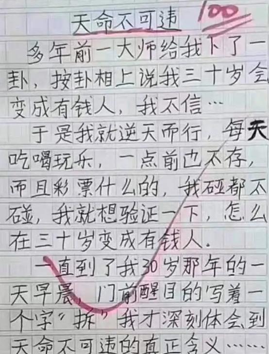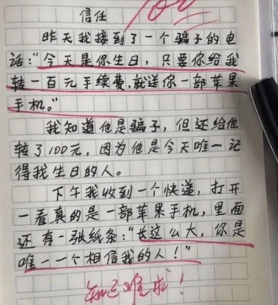 就像这篇《信任》的作文火了,小学生作文《信任》火了,看后有些哭笑不得,老师的评语成亮点,老师:知音难求,学生知道对方是骗子,但是骗子却恰好知道他的生日,没想到这位骗子也良心发现了,真的送了一部手机过来,人生这是“处处有惊喜”,但学生下次还是注意,毕竟这么有良心的骗子不多。