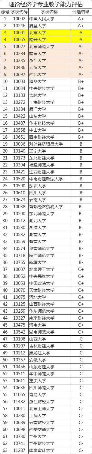 4、参考本文列表了解63所高校所获得的理论经济学学科评估等级。