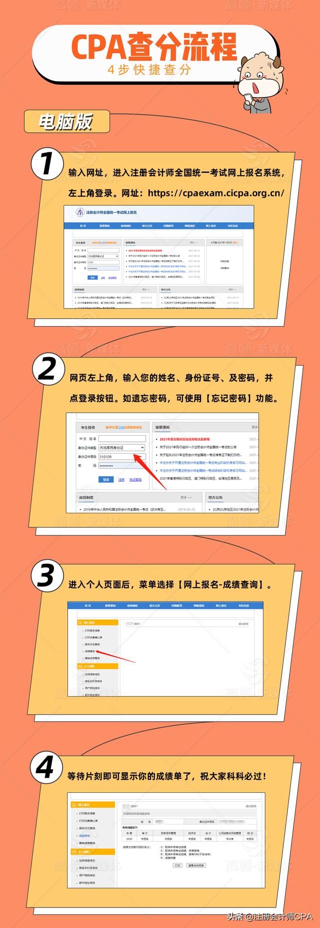 根据中注协提供的官方信息,CPA预计在11月下旬进行查分。相信很多同学早已迫不及待了,小编给同学们提前整理好了【CPA查分流程】,大家可以转发收藏,等一出分就能立刻用上!