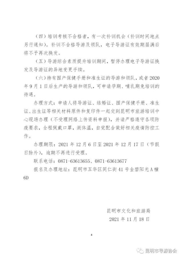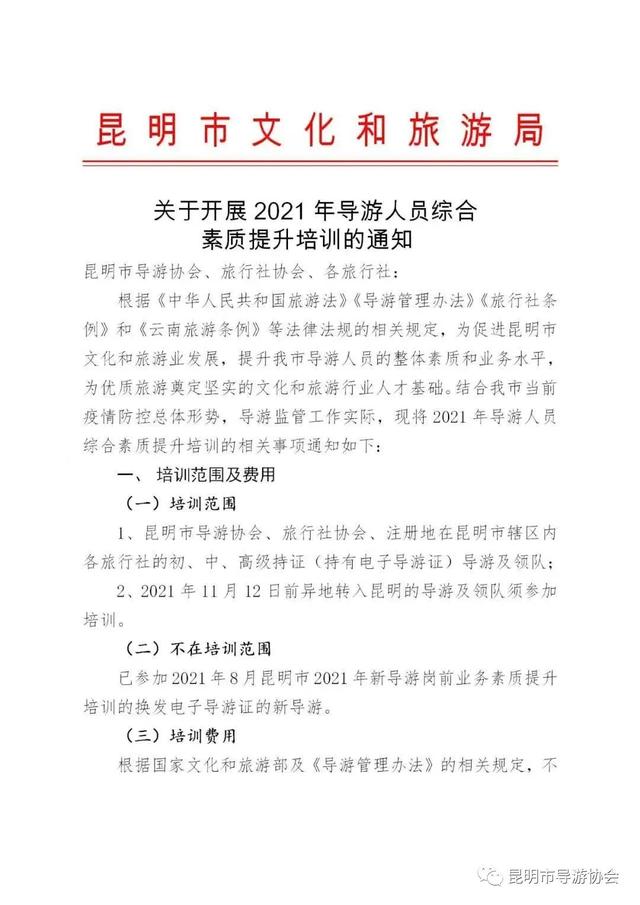 2、2021年11月12日前异地转入昆明的导游及领队须参加培训。