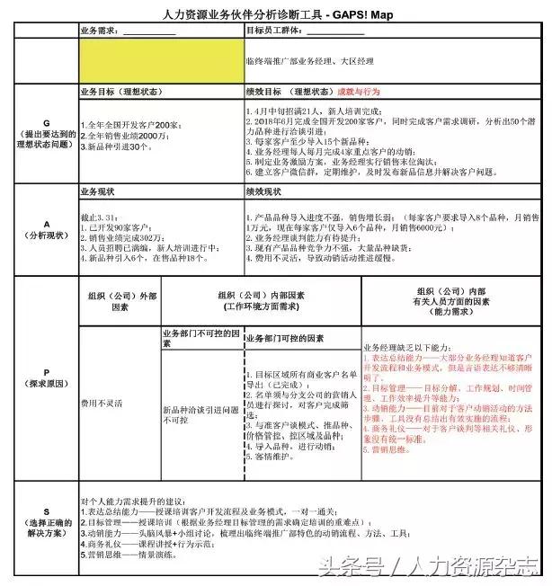 “人力资源业务伙伴分析诊断工具-GAPS Map”一图是她分析沟通后得到的结果。