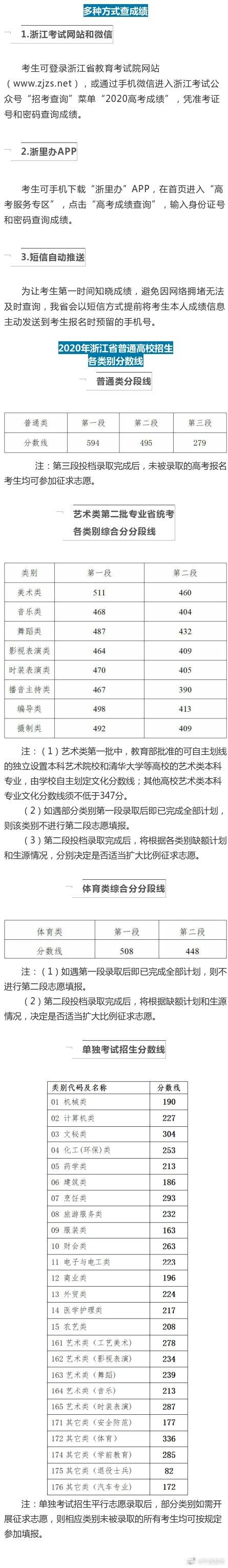浙江高考分数查询(浙江高考分数查询时间) 【2020浙江高考成绩及分数线公布!今晚8点可查成绩】今日关注 2020年浙江高考分数线刚刚公布,普通类一段594 二段495 三段279。今晚20时左右,我省考生即可查询自己的高考成绩。有哪些查询方式?各类别分数线是多少?速来了解。 声明:转载此文是出于传递更多信息之目的。若有来源标注错误或侵犯了您的合法权益,请作者持权属证明与本网联系,我们将及时更正、删除,谢谢。