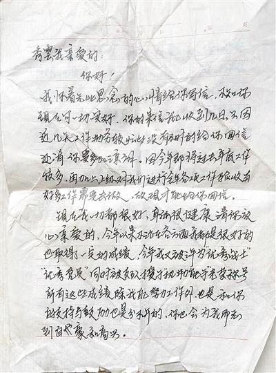 韩存才获得荣誉后与妻子分享喜悦的家书。