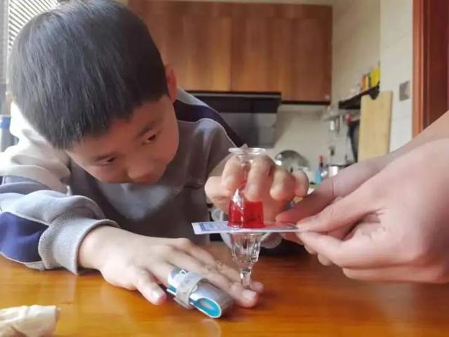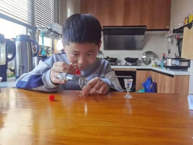 朱丽琴的儿子今年初三,两个孩子玩得像亲哥俩一样要好,“平时他还会请哥哥帮忙做实验,把我先生的酒杯都拿来做实验,玩得可开心了。”朱丽琴说。