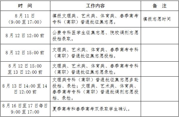 其他专科(高职)高校录取时间:8月7日—14日。