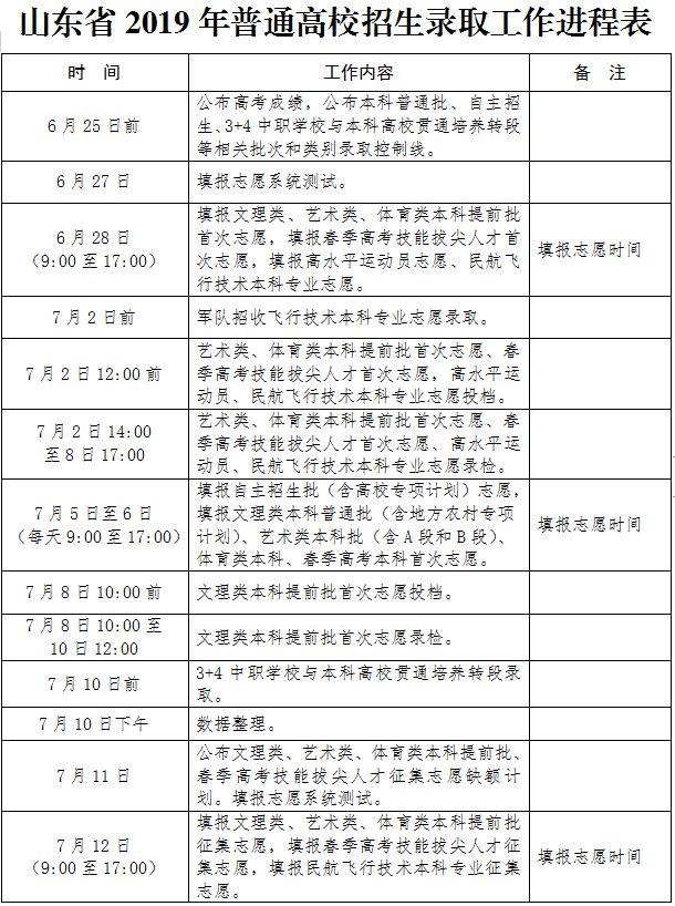山东省2019年普通高校招生录取工作进程表见附件1。