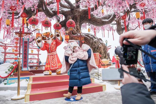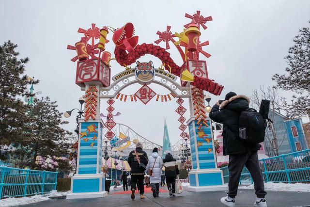 游客李女士告诉新京报贝壳财经记者,在听说北京环球影城换上新春主题后,她特意穿着红色汉服前来打卡拍照。园区里,和李女士一样的游客不在少数,眼下的北京环球影城洋溢着过年的喜庆。在皑皑白雪中,园区点缀的“中国红”成为最亮眼的颜色。