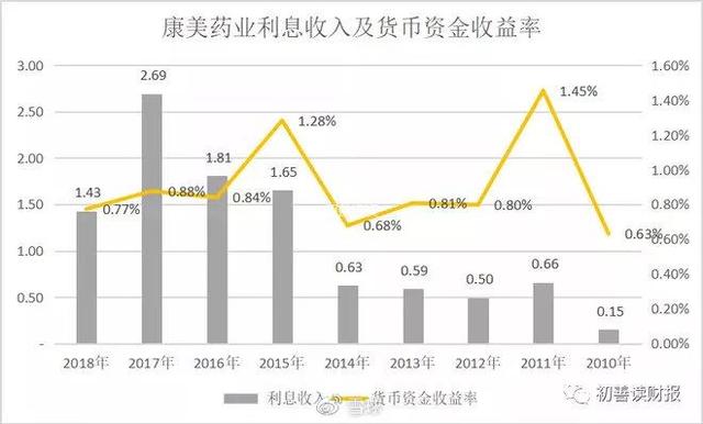 那么康美药业呢,雪球用户@初善君整理了康美药业的利息收入和货币资金余额,计算出货币资金收益率,如下图。可以看到康美药业的货币资金收益率在0.63%-1.45%之间,近三年约0.8%附近,远低于七天通知存款利率,因此使用此方法测算,康美药业货币资金的真实性存在部分可疑。