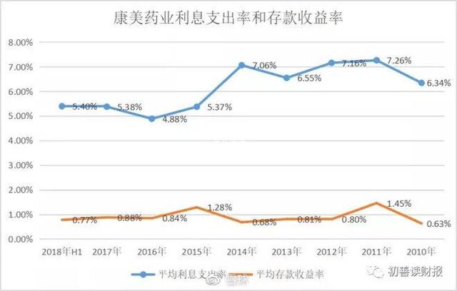 但是实话实说,此测算方法局限性比较大,并不能保证测算结果的完全真确,只是一种参考方法。可是雪球用户@初善君用此方法测算利息支出发现,康美药业的利息支出高达5%以上,2012年-2014年更是高达7%左右,所以从财务管理的角度没有人能够合理解释:康美药业为什么要用5%以上的利息支出率借款347亿元,而收益率只有0.8%左右,难道银行是康美药业大股东开的,为了给银行支付利息?