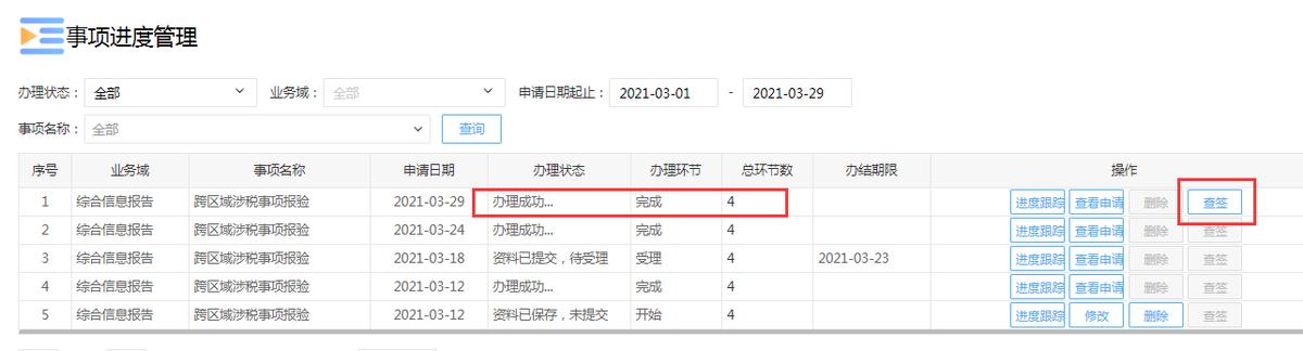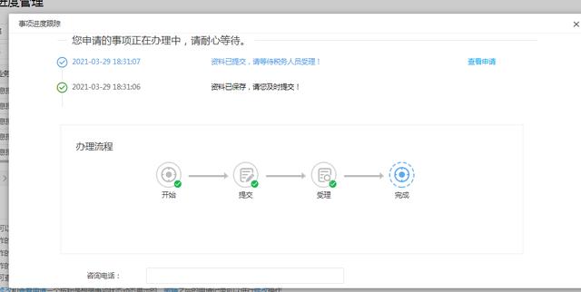 税务人员受理通过后,进度管理中的办理状态显示为“办理成功”,可查签受理通知书,如下图: