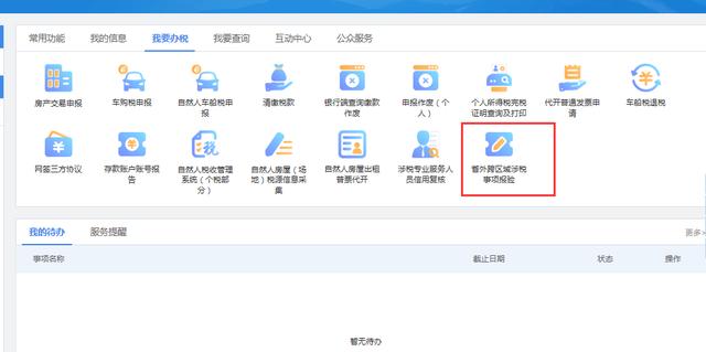 以自然人身份登录成功后,进入【我要办税】-【省外跨区域涉税事项报验】功能。