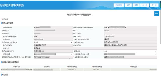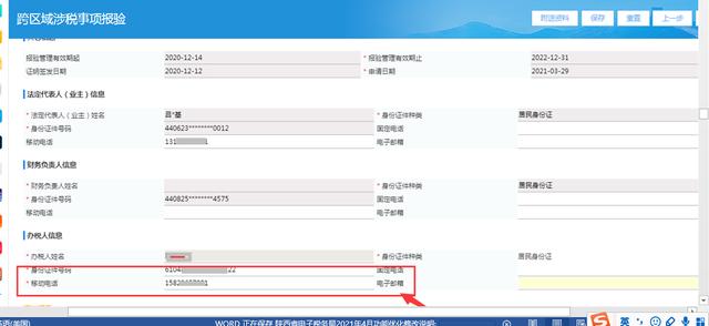1.页面办税人身份信息和移动电话必须要填写正确,后续提交报验申请的主管税务机关受理通过后,系统会给办税人移动电话发送电子税务局登录密码(对于已经在电子税务局开户的省外报验纳税人,二次报验时,电子税务局不再开户发送登录密码)。