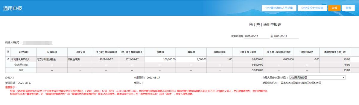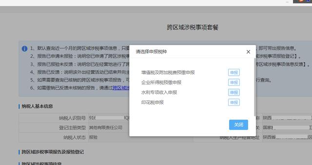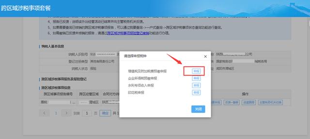 页面显示增值税及附加税(费)预缴、企业所得税预缴、印花税、水利建设专项收入申报。如下图: