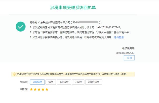 申请填写完成后,点击页面右上角“下一步”按键,提交申请,页面回执页显示提交成功。