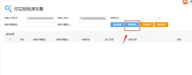 若存在已经采集的税源信息,则选择对应的条件,点击【查询税源】可以查到结果;若不存在,则提示没有税源采集信息!