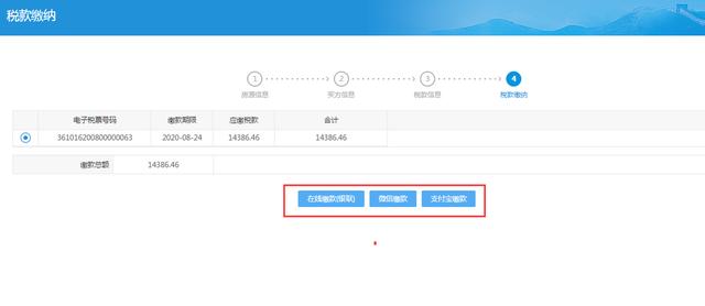 申报成功后,可在申报回执页点击“缴款”按键进行缴款,也可通过原有的“税费申报及缴纳”模块进行缴款。