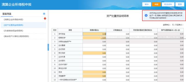 例如:一、《中华人民共和国企业清算所得税申报表》附表一(资产处置损益明细表)和附表二(负债清偿损益明细表 )中账面价值(1)列与当年所属期财务报表年报资产负债表中对应数据项期末余额进行比较,若不一致会弹出提示性校验:企业清算所得税申报表"XXX"与您本年属期的财务报表年报"XXX"数据不一致,请确认填写是否正确,如果确认无误,可忽略此提示继续申报。
