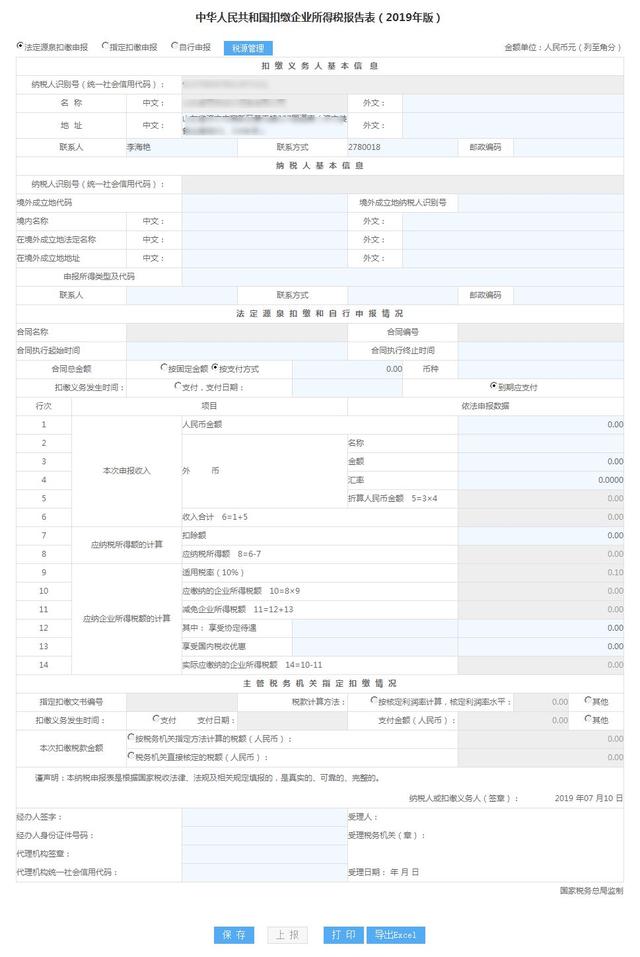 根据《国家税务总局关于发布《中华人民共和国非居民企业所得税预缴申报表(2019年版)》等报表的公告》(2019年第16号)要求,电子税务局非居民扣缴企业所得税申报功能进行调整。