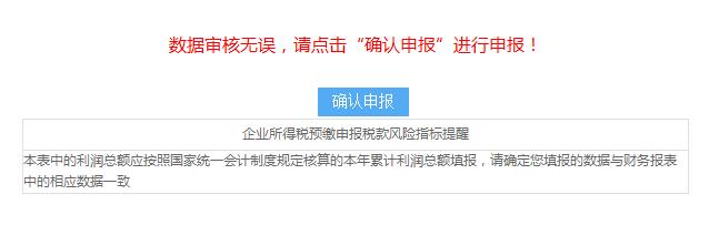 如数据填写不一致,确认申报时系统将给出提示信息,纳税人可继续申报,也可调整申报数据后再进行申报。