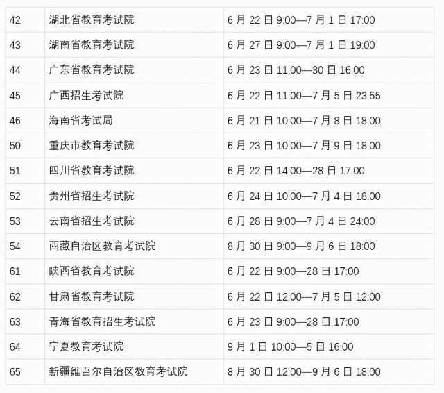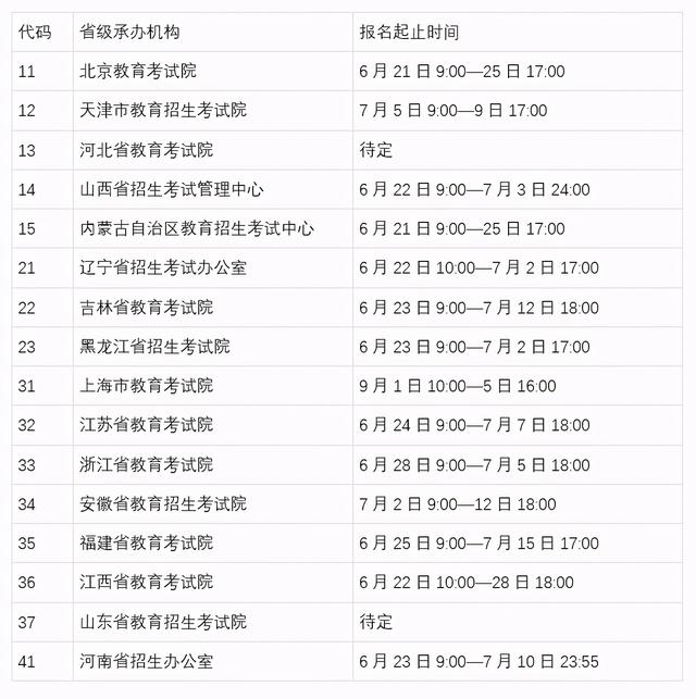 目前各地考点报名工作已陆续展开,各省份具体时间安排如下: