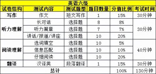 英语六级考试题型及分值比例等