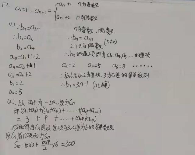 17题是第一道应用题,为简单题型,同去年一样也为数列题,了解数列的基本定义以及前n项和公式即可轻松解出。这道题中也考察一些找规律的能力,遇到这种题目不要慌张,规律题一般都是比较简单的。