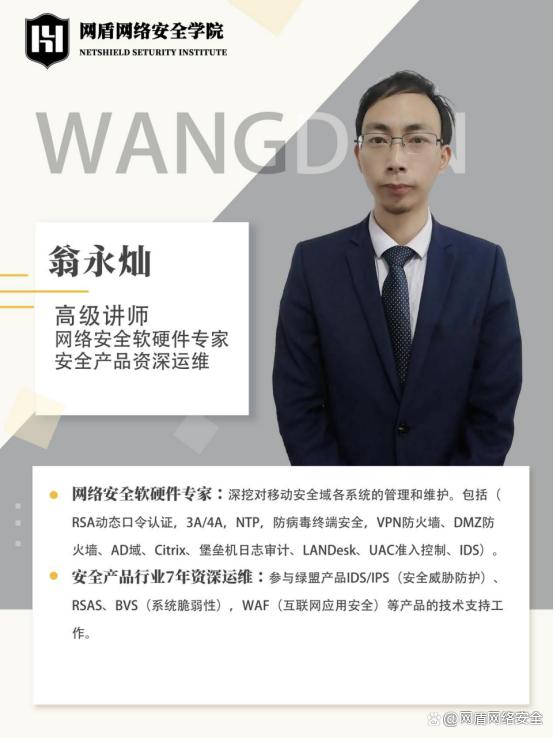 网盾旗下拥有多位金牌讲师,有的多次担任政府、大型企业、公办高校的网络安全顾问;