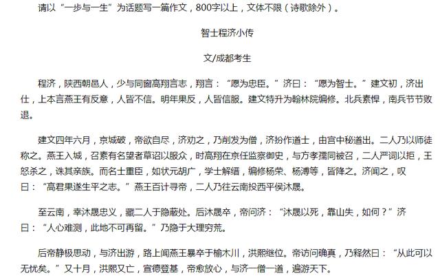 2007年四川高考作文题,成都考生写的《智士程济小传》