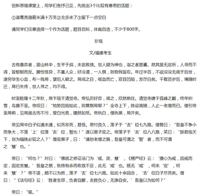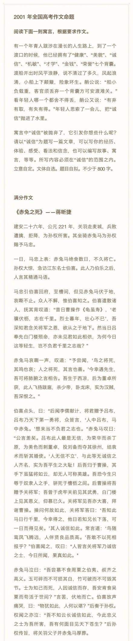 继2001年《赤兔之死》后,用文言文或者白话文写高考作文的套路似乎就火了。不信您看: