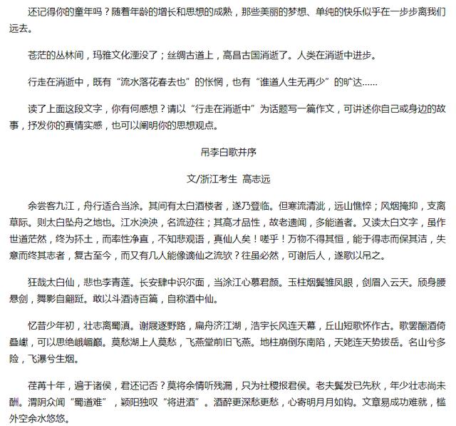 2007年浙江高考作文题,浙江考生高志远写的《吊李白歌并序》