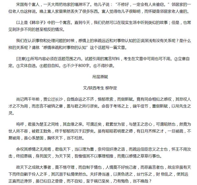 2003年陕西高考作文题,陕西考生柳存定写的《吊屈原赋》