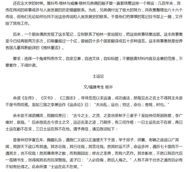 2010年福建高考作文题,福建考生杨华写的《士运论》