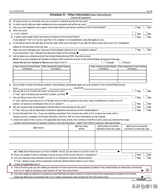 选择将租金作为“与美国的贸易或业务相关的收入”来报税 (That you are making the election.)在美房产的详细信息,包括房产的列表,地址,利益等。(A complete list of all of your real property, or any interest in real property, located in the United States (including location). Give the legal identification of U.S. timber, coal, or iron ore in which you have an interest.)你的房产所有权范围 (The extent of your ownership in the real property.)描述重要的房屋翻新或维护(A description of any substantial improvements to the property.)你在房产中获得的收入(Your income from the property.)购买日期(The dates you owned the property.)是根据税法871(d)条例还是税务条约做出的选择(Whether the election is under section 871(d) or a tax treaty.)之前做出选择或者取消选择的具体信息(Details of any previous elections and revocations of the real property election.)