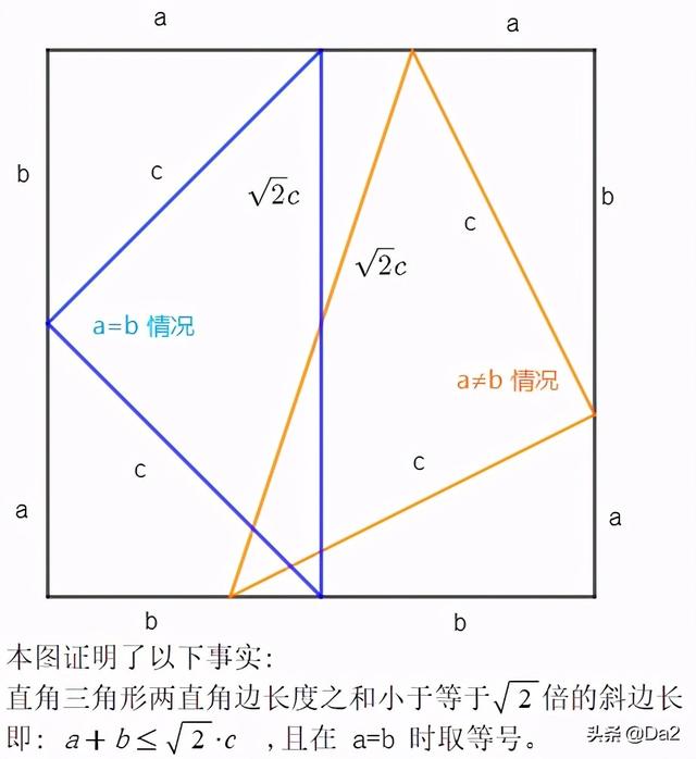 当a,b是直角三角形两直角边,c是斜边时,三边长满足该关系式。