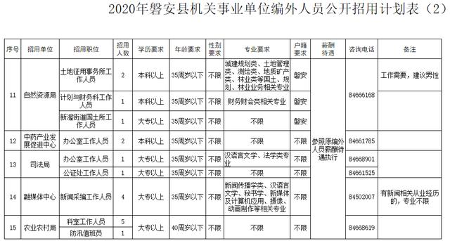 具体招用职位、人数和报考资格条件详见下表或登录磐安县人民政府门户网站(http://www.panan.gov.cn/)查询: