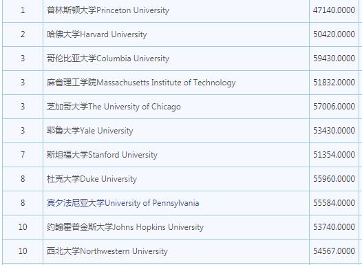 2、 哥伦比亚大学本科各专业学费