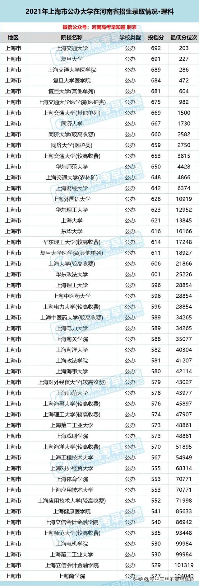 解析:2021年河南理科考生想上上海市的公办大学,至少过线127分(或者位次相差193950位次)。