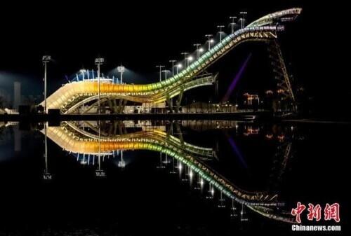 资料图:北京首钢滑雪大跳台亮灯。中新社记者 富田 摄