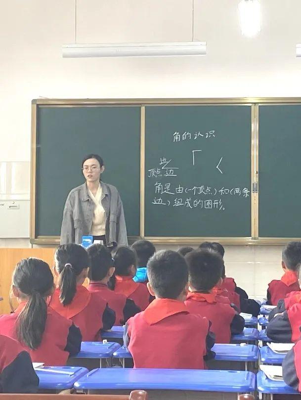 石晓依老师结合当下,联想到图形王国的宝宝带着“口罩”,通过猜图形引入角的认识。整节课通过观察角的特点,画角,生活中找角,动态座椅图展示角的大小与张开的大小有关,环环相扣。