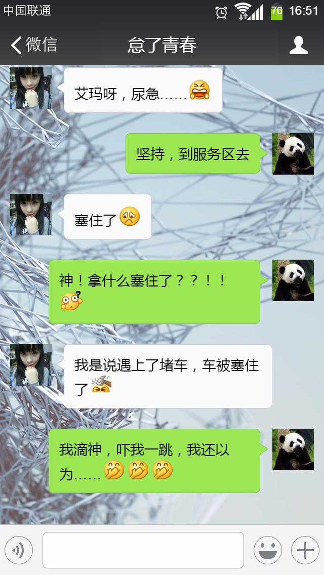 5. 媳妇儿回农村老家喝喜酒,上公厕的时候手机不小心掉进去了,刚花几千大洋买的手机啊,她心疼地咬着牙把手机拿了出来,扔掉手机壳,拆掉贴膜,用湿巾来来回回擦了几十遍,说还好还好,除了接电话的时候,时不时地从充电孔里传来一股熟悉的味道,其他哪里都正常。然后她高兴地拿着手机跟我的手机交换了一下…… 一同学,他初中就辍学了。昨天问我:你知道怎么洗纹身吗?我问:怎么了?他说:前阵子认识一妞,叫霞儿,真漂亮,无可救药爱上她了,愿意为她付出一切,于是用墨水在手臂上刺了她的名字,痛了好几天呢!我问:那怎么又要洗?他说:他娘的,今天才知道,原来她名字叫“遐迩”。哈哈!
