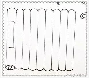 6 在画面的左下方我们用书卷做边框,更显古香古色。先画出一些平行的竖线。