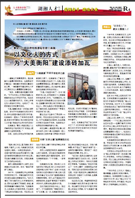 但任美衡对此称呼却非完全认同。他说自己顶多是在持续、无限地向“文化人”靠近,不断精进自己的专业,不断开掘衡岳大地文学和文化力量,期待以自己的微薄之力为“大美衡阳”建设添砖加瓦。