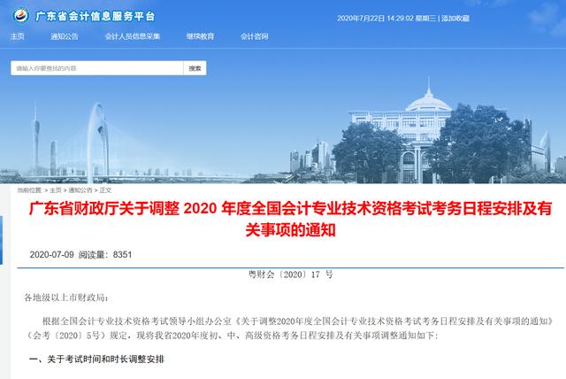 各地财政局于2020年7月17日前将延期和转考申请汇总表上报至省财政厅会计处。