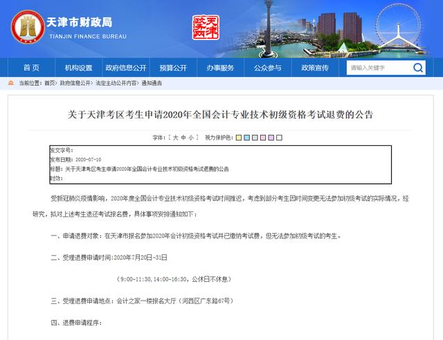 一、 申请退费对象:在天津市报名参加2020年会计初级资格考试并已缴纳考试费,但无法参加初级考试的考生。