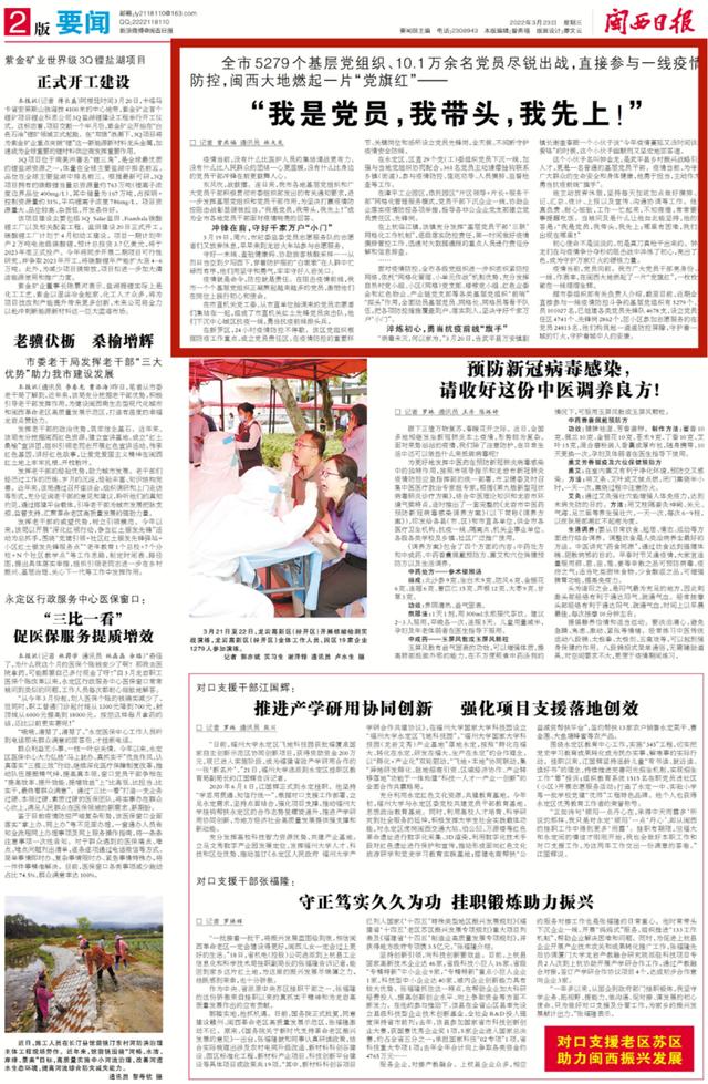 全市5279个基层党组织、10.1万余名党员尽锐出战,直接参与一线疫情防控,闽西大地燃起一片“党旗红”。