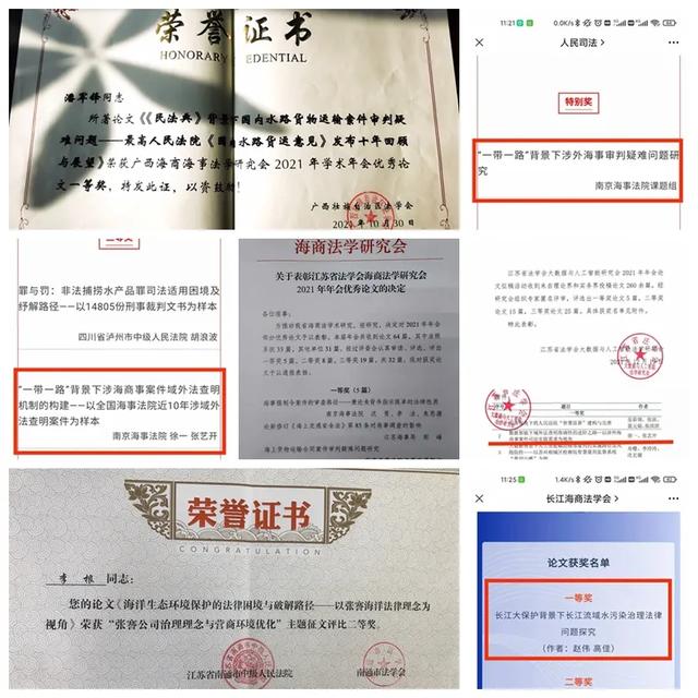3、《南京海事法院创新构建“1+10”海事司法与行政执法协作机制》,入选《江苏法院2021年司法改革案例选编(四)》;
