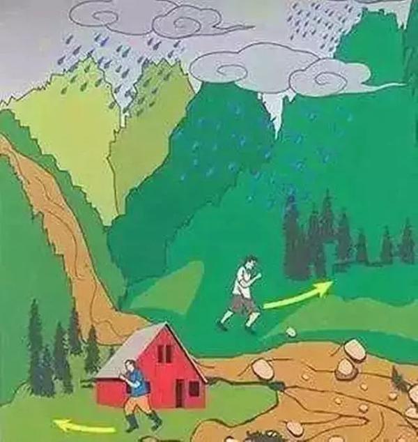 2.山洪暴发时,千万不要沿着洪道方向逃跑,而要向两侧快速躲避。不要轻易涉水过河。