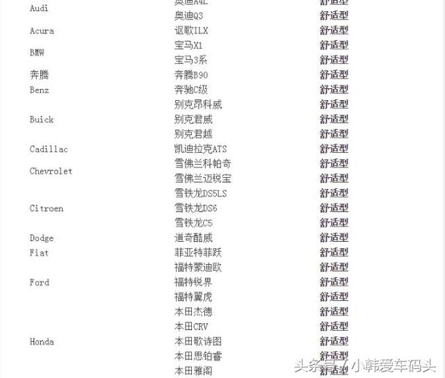 3、滴滴专车的部分车型要求如下图: